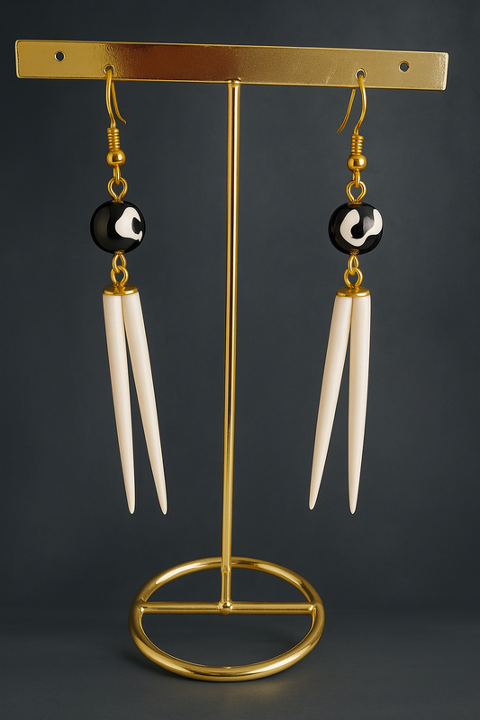 Boucles d’oreilles Kundé – Élégance ethnique en noir & ivoire