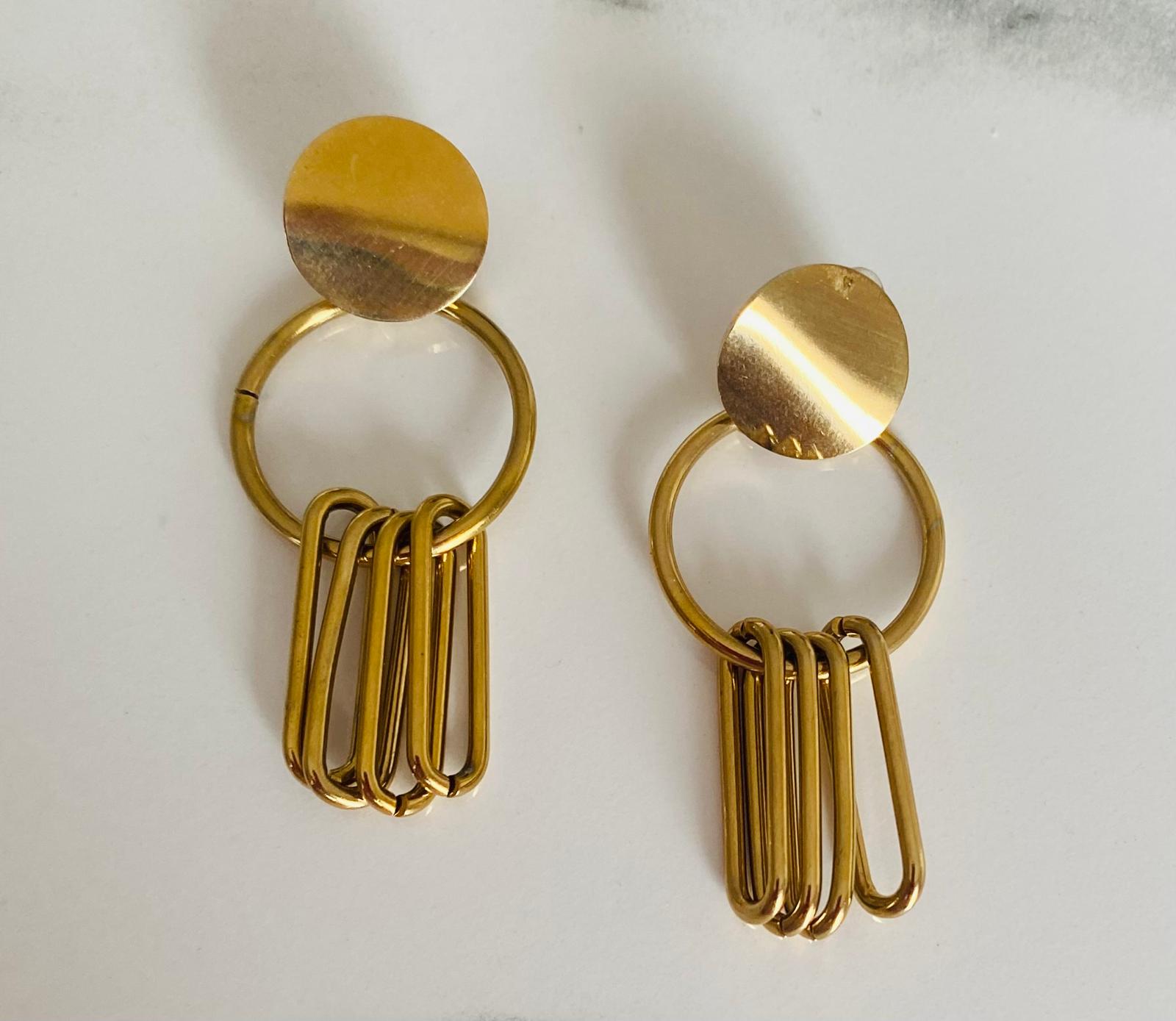 Ajoutez une touche de caractère à vos tenues avec les boucles Félicie, une paire de boucles d’oreilles au design original et raffiné. Leur structure graphique en laiton doré capte la lumière tout en apportant une note moderne et élégante à votre style.